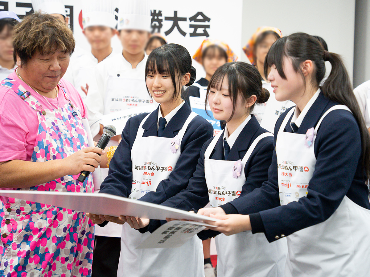 去年先輩が優勝したのをきっかけに、私も食で日本一を取りたい!と思い、うまいもん甲子園に挑戦しました。チームの2人といろんなことに挑戦し、手にした優勝は高校生活一番の思い出です。また、自分の中で無くならない大きな自信になりました。この経験を卒業してからも活かしていきたいです。