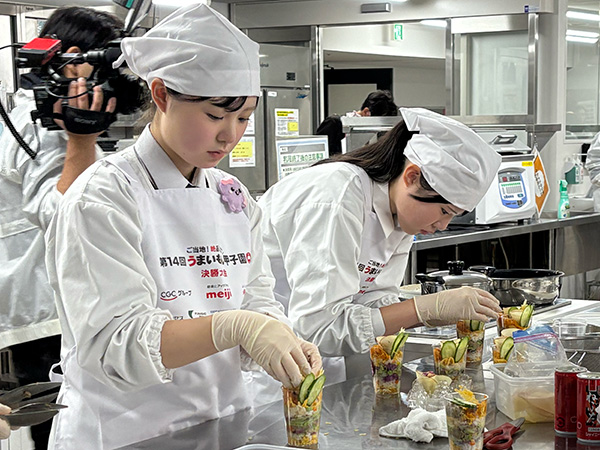2連覇を果たした、『ご当地!絶品うまいもん甲子園』とは、地元食材を使用したアイディアの調理とプレゼンで競う高校生最大の料理コンテストです。本校では今年度、2チームがエントリーしました。
